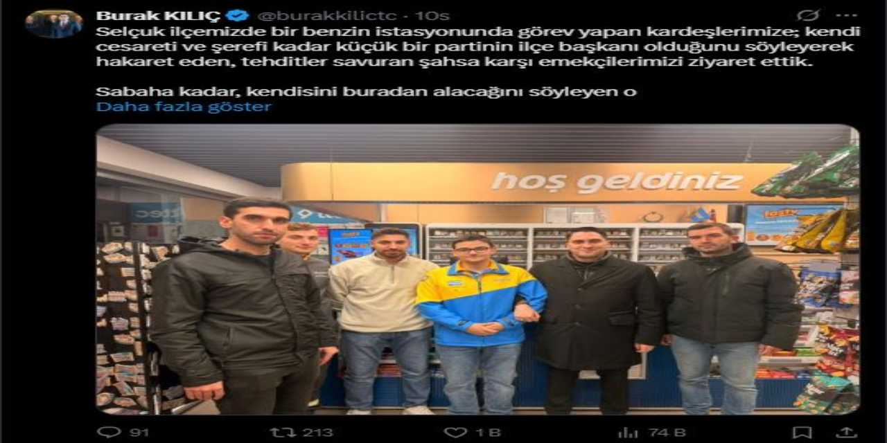 “Selçuk ilçemizde bir benzin istasyonunda görev yapan kardeşlerimize; kendi cesareti ve şerefi kadar küçük bir partinin ilçe başkanı olduğunu söyleyerek hakaret eden, tehditler savuran şahsa karşı emekçilerimizi ziyaret ettik.